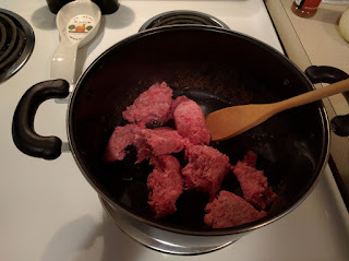 Add salt, pepper, and chili powder to mixture (feel free to adjust measurements to your liking, I always end up adding more salt). Cook together until beef is browned and onions are translucent. Drain grease off mixture and add back to pot. Pour in tomatoes with chilies, corn, and 4 cans of water. Add taco seasoning and stir until mixed thoroughly.